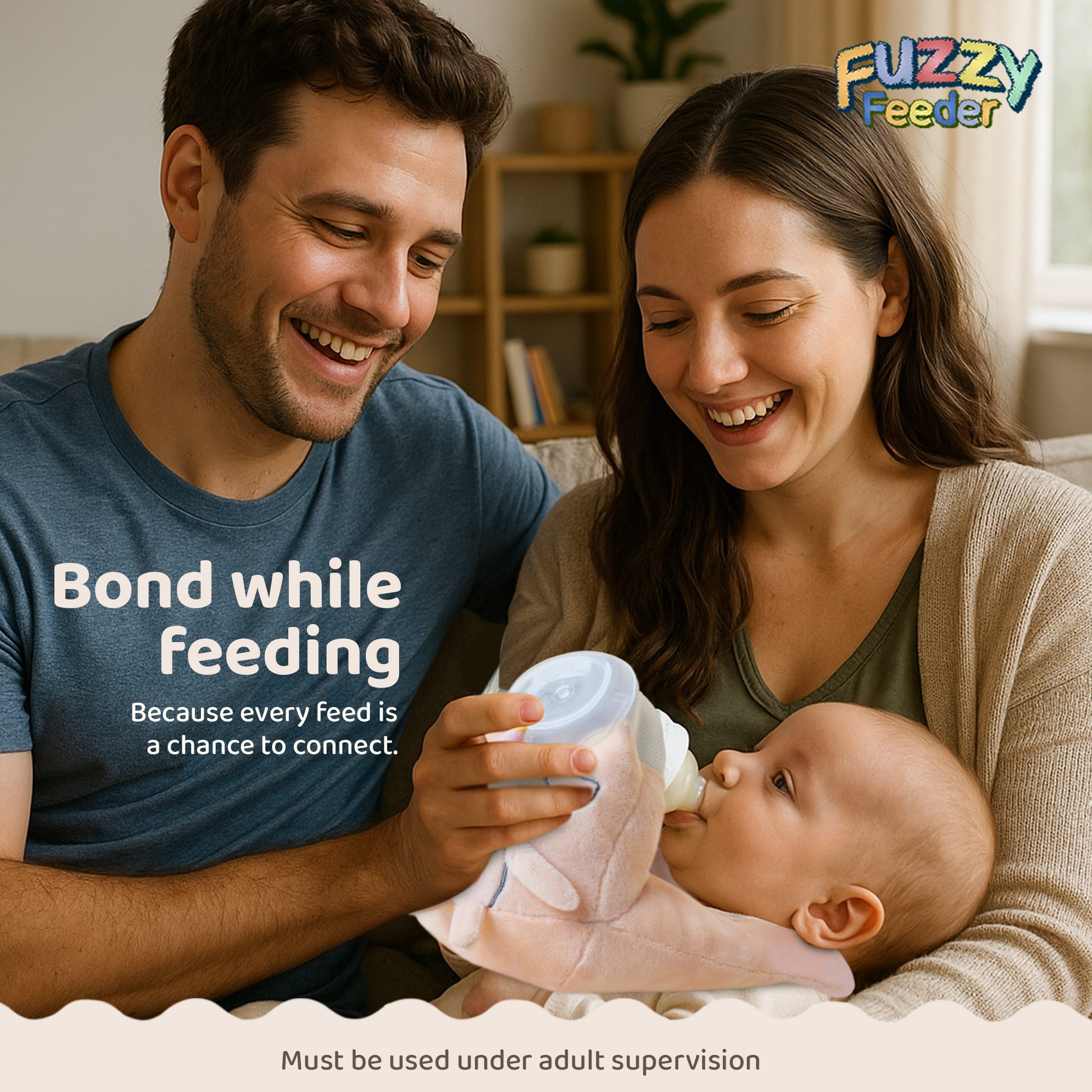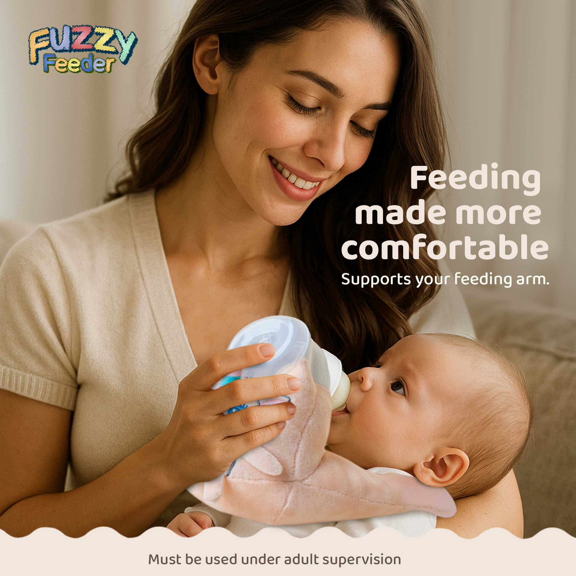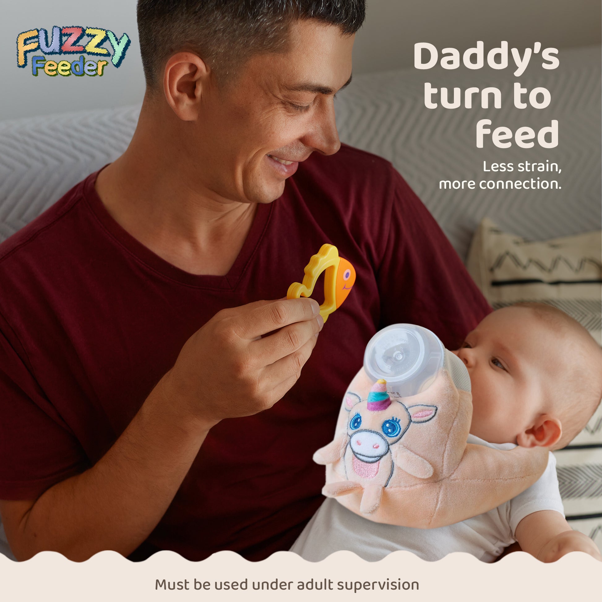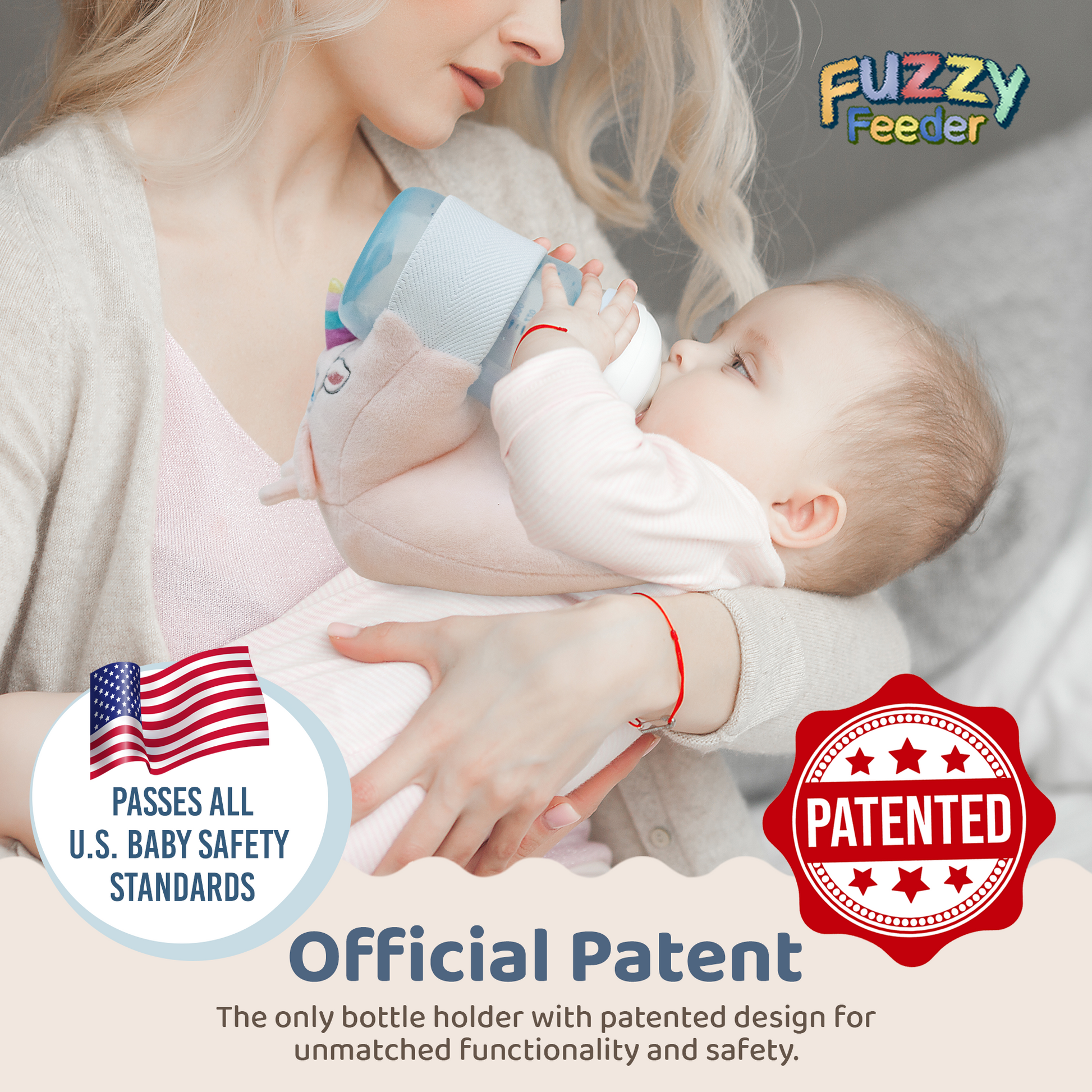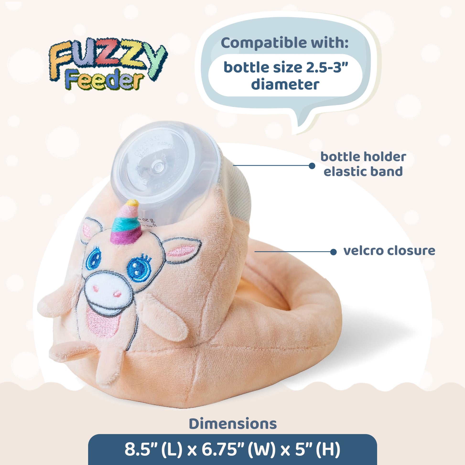 Make feeding time magical with the Fuzzy Feeder Unicorn Plushie Bottle Holder. This cuddly, whimsical plushie is designed to wrap around the patented Fuzzy Feeder hands-free system, keeping bottles secure at the perfect angle — while giving little ones a soft, comforting friend.